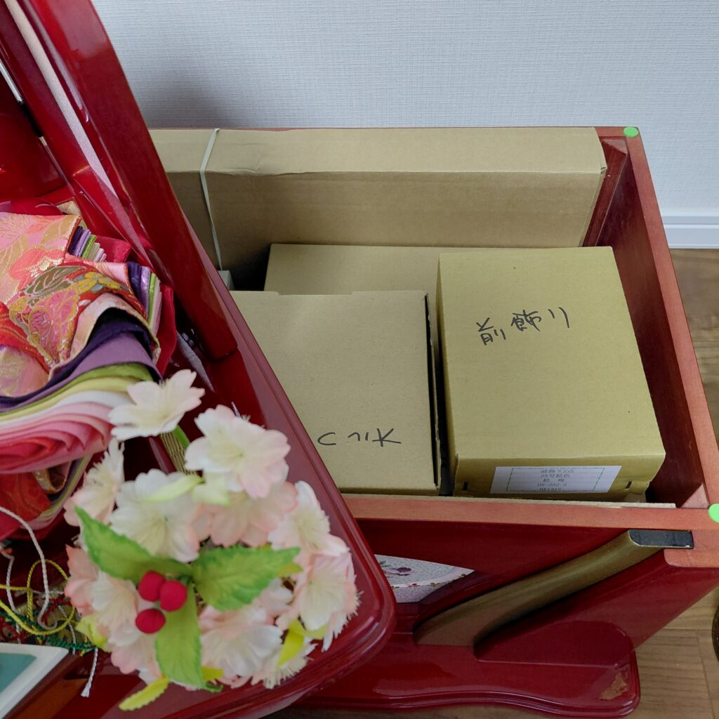 一方で、現代のひな人形は、マンションなどの住環境に合わせて進化しています。このお雛様は、土台がそのまま収納箱になるタイプです。高さが出るので、床に置いてもとても綺麗に見えるのが特徴です。