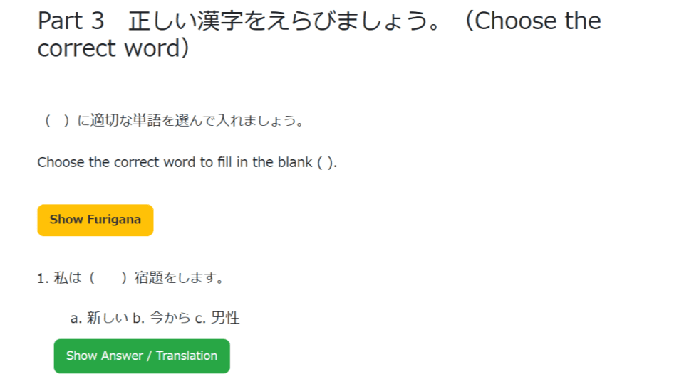 This class focuses on passing the Japanese-Language Proficiency Test (JLPT).