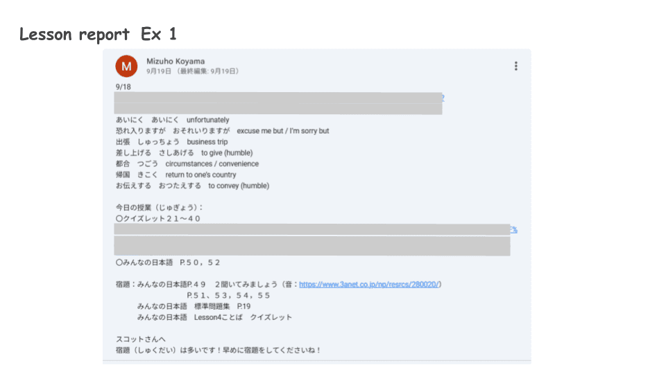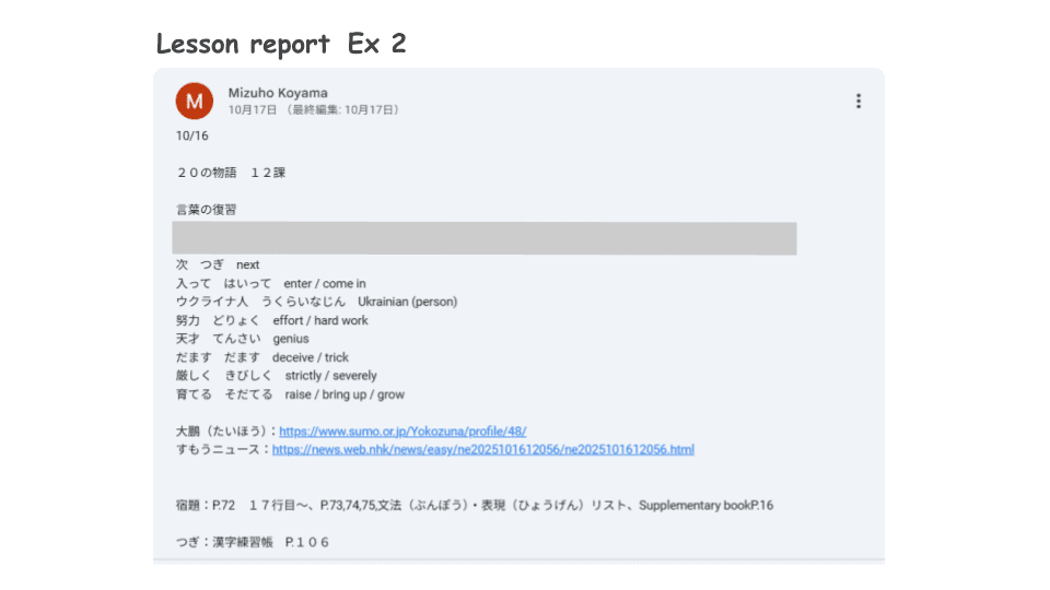 Ms. Koyama is a great teacher! She always teaches with kindness. Her lessons are always fun and interesting! She carefully prepares the lessons and homework for us. 🌸🌸😊😊😊